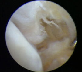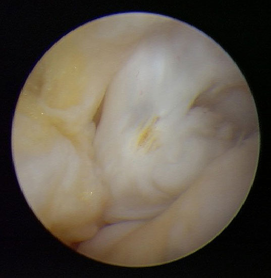 Die zuverlässigste Beurteilung der mechanischen Stabilität des Deltabandes gelingt durch die diagnostische Arthroskopie (Abbildung 5)13.
