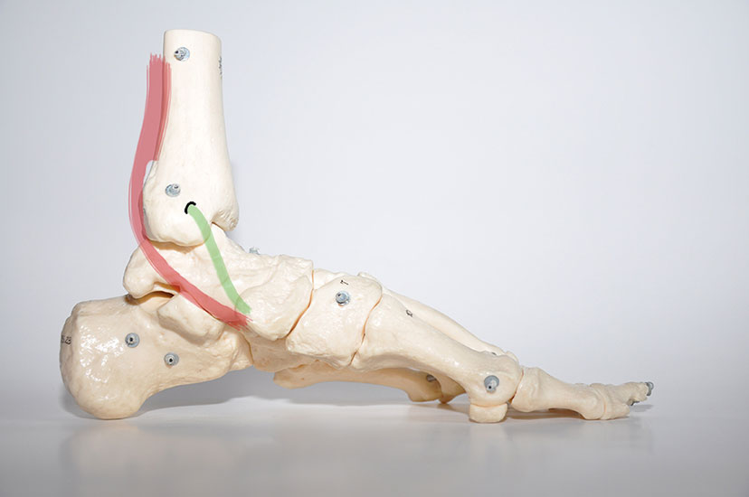 Analog zum lateralen Kapsel-Band-Apparat kann auch medial eine Augmentation durch einen Periostlappen oder durch ein Sehnentransplantat erfolgen (z.B. Plantaris longus Sehne). Hierzu wird das Transplantat durch Bohrlöcher am medialen Malleolus und am Os naviculare gezogen und bei 90° Stellung des Sprunggelenks mit leichter Vorspannung fixiert (Coughlin 2014). Es ist darauf zu achten den anatomischen Bandverlauf exakt einzuhalten. Nach der Rekonstruktion muss noch eine freie Bewegung des Sprunggelenks möglich sein, ansonsten ist die Rekonstruktion zu straff.