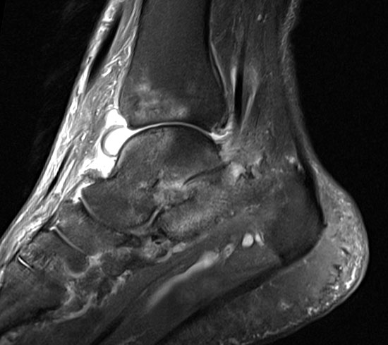 Die sonographische Untersuchung des Fußes wird in der Regel mit 7,5MHz durchgeführt. Erfasst und differenziert werden können ein Gelenkerguss bei Synovialitis, eine Bursitis bzw. eine Tenosynovialitis. Mit Hilfe des Power-Dopplers kann auch eine Aussage über die Krankheitsaktivität gemacht werden.
