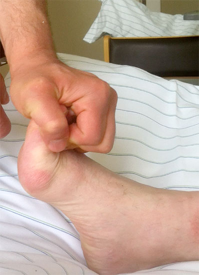 Bei Vorliegen einer ansatznahen Tendinopathie berichten die Patienten über vor allem in den frühen Morgenstunden oder bei initialer Belastung auftretende Schmerzen auf Höhe des Ansatzes der M. tibialis anterior Sehne. Beschwerdebildführend ist ein ansatznaher Druckschmerz der Sehne. Zeitweise kann ein Ruheschmerz, insbesondere in den Morgenstunden, vorliegen. Die Kraft der Dorsalextension gegen Widerstand kann schmerzhaft limitiert sein, ist aber in der Regel nicht abgeschwächt. Nicht selten liegt ein Pes planovalgus mit Abflachung der Längswölbung begleitend vor 34.