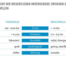 Im Gegensatz zu der bei urologischen Fragestellungen der Steinzertrümmerung erwünschten Desintegration wirkt die Stosswelle bei orthopädischen Krankheitsbildern im Sinne der Mechanotransduktion, d.h. durch Induktion reparativer und regenerativer Prozesse.