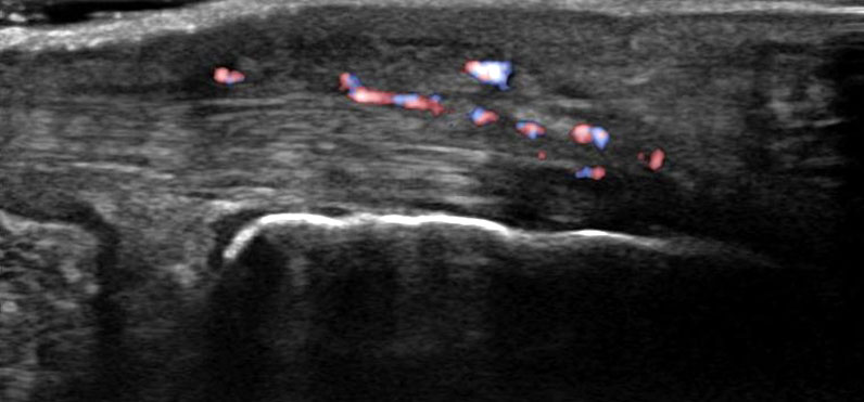 Die sonographische Diagnostik eignet sich primär zur Erkennung schmerzhafter Prozesse im Verlauf der Achillessehne und kann bei Bedarf durch Röntgen bzw. MRT ergänzt werden. Besonders bei längeren Verläufen und kräftigen spindelförmigen Schwellungen (>9mm, Normwert <5mm) im Bereich der kritischen Zone sollte ein MRT zum Ausschluss von Nekrosezonen und Partialrupturen vor Therapiebeginn veranlasst werden. Die sonographisch leicht zu erfassende Veränderung der Sehnendicke im mittleren Sehnenanteil ist ein guter Indikator für die Schwere der Erkrankung und die Beurteilung des Behandlungsverlaufes. Die sichtbaren Veränderungen am distalen knöchernen Ansatz der Sehne sind diskreter.
