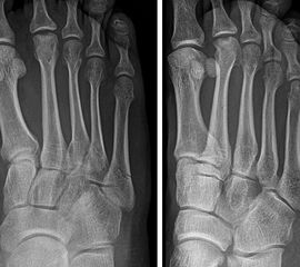 Akzessorische Knochen im Bereich der MT V Basis können als Frakturen fehlgedeutet werden. Hier sind insbesondere das Os vesalianum (zweiter Ossifikationskern des MT V, im Ansatzbereich der Peronus brevis Sehne) sowie das Os peroneum (Akzessorischer Knochen im Sehnenverlauf der Peronaeus longus Sehne, lateral des Os cuboideum) zu nennen 10.