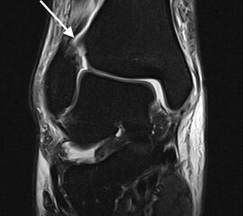 Die Magnetresonanztomographie stellt aktuell den Goldstandard in der Diagnostik von Syndesmosenverletzungen dar (Szeimies 2013). Beschrieben sind eine Sensitivität von 100% und eine Spezifität von 93% bei Verletzungen des AITFL, sowie eine Sensitivität und Spezifität von 100% bei Verletzungen des PITFL. Darüber hinaus ermöglicht das MRT weitere ligamentäre, chondrale oder intraossäre Verletzungen zu detektieren. Bei chronischen Syndesmosenverletzungen sollte eine MRT-Diagnostik mit Kontrastmittel (KM) intravenös durchgeführt werden, da diese eine höhere Spezifität und Sensitivität im Vergleich zur nativen MRT-Bildgebung aufweist. Durch die zusätzliche Gabe von KM können durch eine Mehranreicherung des KM im Bereich der Syndesmose Rückschlüsse auf das Vorhandensein einer chronische Instabilität gezogen werden 41.
