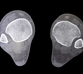 Die CT-Diagnostik erlaubt eine kritischere Beurteilung des DTFG. Die Wertigkeit zur Beurteilung von Syndesmosenverletzungen wurde in diversen Studien untersucht. Die Kongruenz im distalen Tibiofibulargelenk sollte in den axialen Schichten beurteilt werden 39. Aufgrund der hohen physiologischen Varianz, ist ein Seitenvergleich empfehlenswert (Abb. 5). So können die anteroposteriore Translation, Rotation und Verkürzung des betroffenen DTFG im Vergleich zum gesunden DTFG verglichen werden 40.