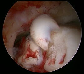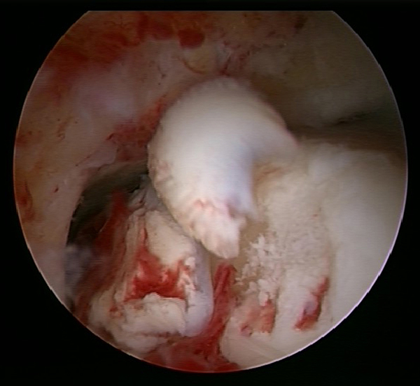Ein aktuelles systematisches Review zur arthroskopisch-assistierten Frakturversorgung (AORIF) am Sprunggelenk identifizierte bei 495 von 782 Patienten (63,3%) chondrale Verletzungen 54. Weder durch die klinische Untersuchung noch mit konventionellen Röntgenaufnahmen oder mittels CT-Bildgebung lassen sich diese Verletzungen zuverlässig diagnostizieren. Aus diesem Grund rückt die arthroskopisch-assistierte Frakturversorgung am oberen Sprunggelenk zunehmend in den Fokus. Die Arthroskopie ermöglicht im Rahmen der Frakturversorgung sowohl die Kontrolle der Reposition als auch die Beurteilung und Therapie von intraartikulären Pathologien. Während sich die arthroskopisch-unterstützte Versorgung einiger Frakturen bereits etabliert hat (z.B. proximale Tibiafraktur) gehört der Einsatz der Arthroskopie bei der Frakturversorgung des oberen Sprunggelenks in den allermeisten Kliniken noch nicht zum Versorgungsalltag 155 Im Gegenteil, in einer aktuellen amerikanischen Datenbankanalyse des United Healthcare Orthopedic Datasets wurden zwischen 2007 und 2011 insgesamt 32 307 Patienten identifiziert, die mittels ORIF an einer Sprunggelenksfraktur versorgt wurden. In weniger als einem Prozent erfolgte eine arthroskopisch-assistierte Versorgung 55. Dem gegenüber stehen arthroskopische Studien der vergangenen Jahre, die zeigen konnten, wie häufig es zu intraartikulären Verletzungen bei Sprunggelenksfrakturen kommt. Das Risiko für diese intraartikulären Begleitverletzungen nimmt mit der Komplexität der Fraktur zu 5657. Es liegt also nahe, dass bei komplexeren Frakturen die Durchführung einer Arthroskopie im Rahmen der Frakturversorgung einen positiven Effekt auf das Behandlungsergebnis hat. Aus Sicht der Autoren sollte es Ziel für die Zukunft sein, die Frakturtypen zu identifizieren, die von einer arthroskopisch-assistierten Frakturversorgung profitieren. Die diagnostische Arthroskopie mit dem Ziel der gleichzeitigen arthroskopischen Therapie ist in der aktuellen S2-Leitlinie bereits eine Level-1b-Empfehlung. In den Abbildungen 20 – 30 ist schrittweise unser Vorgehen zur arthroskopisch assistierten Versorgung einer Trimalleolarfraktur dargestellt.