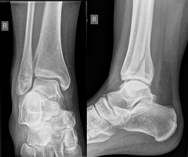 Grundsätzlich können isolierte, nicht dislozierte Außen- und Innenknöchelfrakturen ohne Instabilität der Malleolen-Gabel konservativ behandelt werden. Entscheidend ist deshalb, zunächst sicherzustellen, dass keine begleitenden knöchernen oder ligamentären Syndesmoseninstabilitäten (z. B. posteriore Malleolus-Frakturen) oder Verletzungen der medialen Säule (Lig. deltoideum) vorliegen. Da hier die klinischen Zeichen (Schwellung/Schmerzen/Hämatom) nicht immer eindeutig sind, sollte im Zweifelsfall die Stabilitätsprüfung unter Bildwandler-Kontrolle mittels Stresstestung erfolgen 11. Der Außenrotationtest nach Frick bietet hier eine zuverlässige Methode 12. Die Erweiterung des „medialen clear space“ (MCS) gegenüber dem oberen Gelenkspalt von >1 mm bzw. eine totale Weite des MCS von ≥4 mm gelten als Maß für das Vorliegen einer Instabilität der Knöchelgabel 1112.