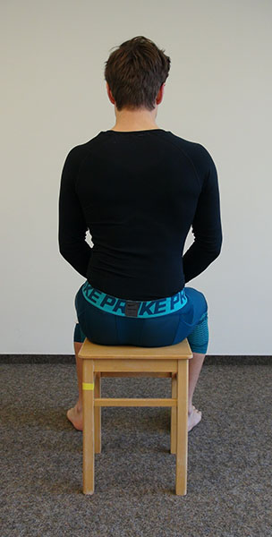 Aufrechter Sitz auf einem Stuhl, die Hände liegen seitlich am Becken.