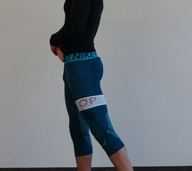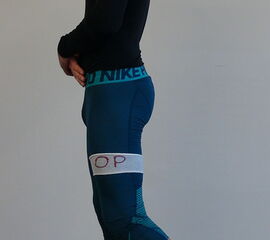 Die Ferse des operierten Beins wird langsam in Richtung Bodengeschoben, ohne dass sich das Becken mit bewegt. Position ca. 5 Sekunden halten.