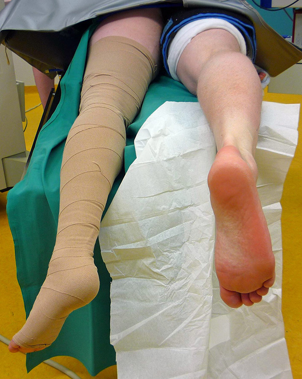 - Hochlagerung, Kryotherapie, Schmerztherapie und Lymphdrainage in Abhängigkeit von Schwellung und Schmerzen.