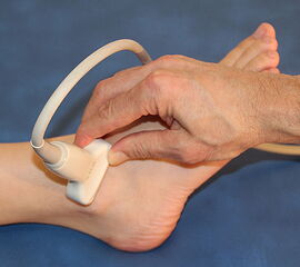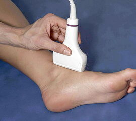 Bei der Diagnostik und Therapiekontrolle von Verletzungen und Erkrankungen an Sprunggelenk und Fuß, wie auch an anderen Bewegungsorganen spielt die Sonographie eine zentrale Rolle. Der Untersucher kann auffällige klinische Untersuchungsbefunde unmittelbar darstellen und die betroffene Struktur auch dynamisch untersuchen. Technische Voraussetzung ist ein für den Bewegungsapparat geeignetes Ultraschallgerät mit Linearschallkopf. Bei sehr oberflächennahen Strukturen oder zum Ausgleich einer unregelmäßigen Oberfläche kann zur besseren Ankopplung eine Vorlaufstrecke verwendet werden.