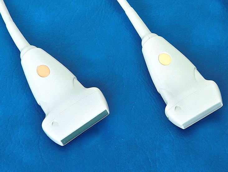 Verwendet werden Linearschallköpfe (Abb. 2), da die relevanten anatomischen Strukturen meist gerade verlaufen und bei orthograder Untersuchungstechnik parallel zum Schallkopf zu liegen kommen. Dies erleichtert die Interpretation der Befunde am Monitor. Bei sehr oberflächennahen Strukturen oder zum Ausgleich einer unregelmäßigen Oberfläche ist zur Umgehung des ungünstigen Nahfokusbereichs bzw. zur besseren Ankopplung eine Vorlaufstrecke zu empfehlen. Ein Frequenzbereich von 7,5 bis 15 MHz ist für die an Fuß und Sprunggelenk meist oberflächennah vorkommenden Veränderungen zu empfehlen. Die Länge des Schallkopfs liegt zwischen 4 und 5 cm.