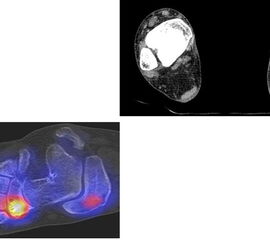 In Abbildung 5.5.ist der Fall einer Patientin mit Klippel-Trénaunay-Syndrom zu sehen, bei der sich szintigraphisch kein Hinweis auf einen Infekt ergab. Osteolytische Veränderungen im CT waren szintigraphisch negativ und konnten ossären Veränderungen im Rahmen des Syndroms zugeordnet werden.