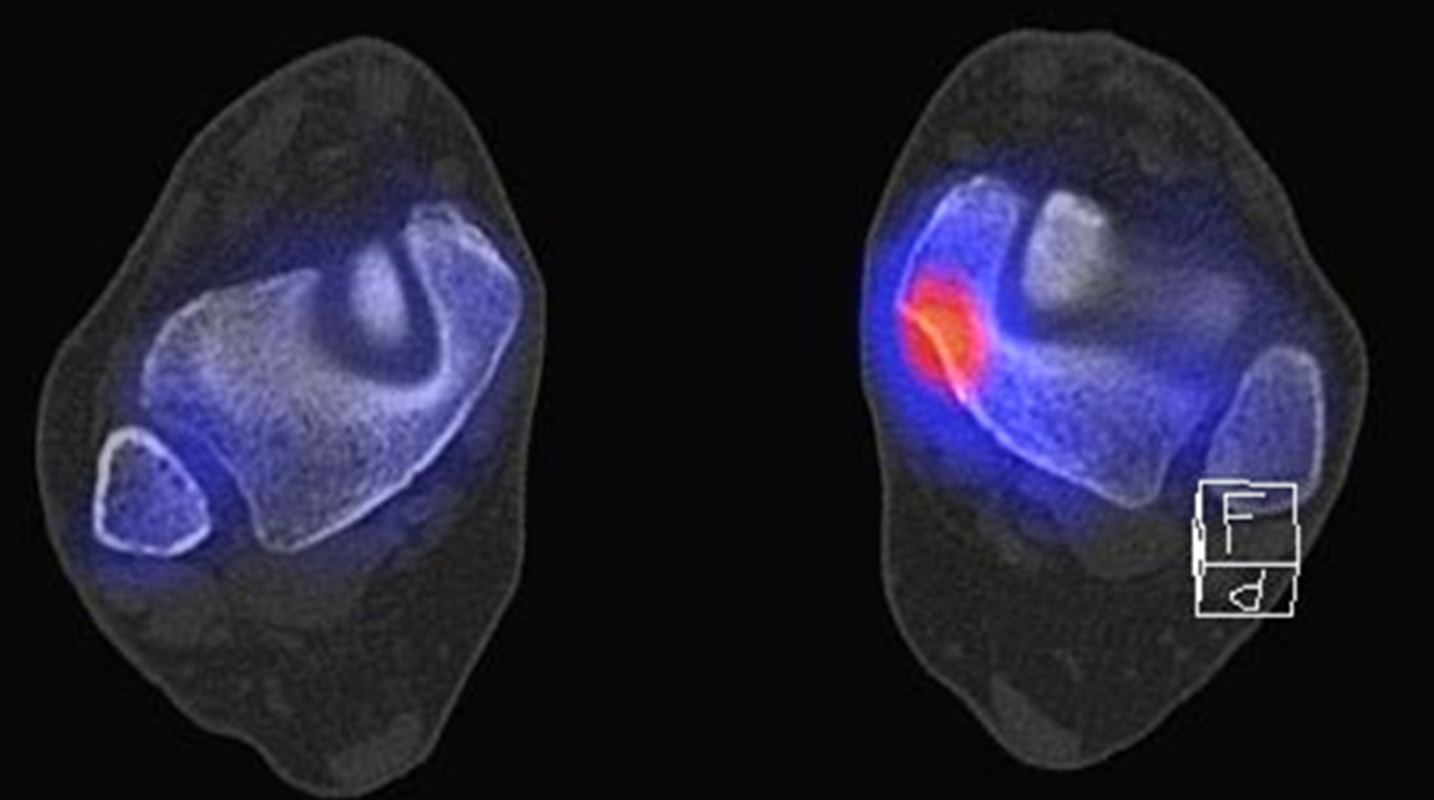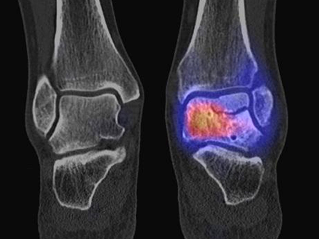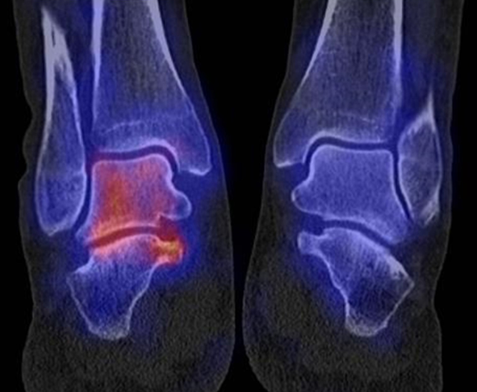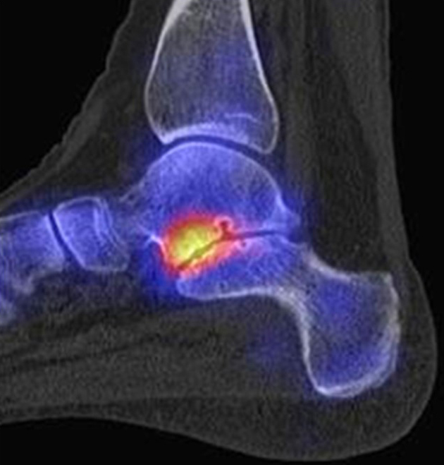 Auch Stressreaktionen am unteren Sprunggelenk können mit Hilfe der SPECT/CT exakt lokalisiert und differenziert werden.
