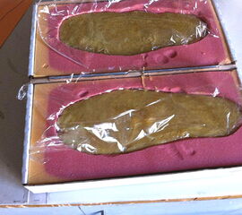 - Schicht 5 als Bezug der Bettung (Plastazote); nach Einbau und Probetragen der Einlage wird die Bettung mit Plastazote 2-4mm bezogen (Abb. 8).