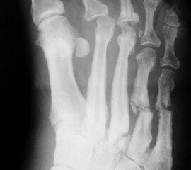 Die Häufigkeit der diabetischen-neuropathischen Osteoarthropathie (DNOAP) bei Diabetes liegt zwischen 1 und 10% 1718. In der Regel sind nur Teile des Fußskeletts betroffen.