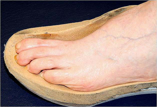 Vorfußbereich und Zehen benötigen ausreichend Platz im Schuh, selbst wenn die Kosmetik darunter leiden sollte. Ein großer Diskussionspunkt ist die Vorderkappe. Im Gegensatz zu den Aussagen von Chanteleau sind wir der Ansicht, dass eine kurze, auslaufende Vorderkappe kein Problem darstellt, wobei das Zehenfach genügend Raum bieten muss.