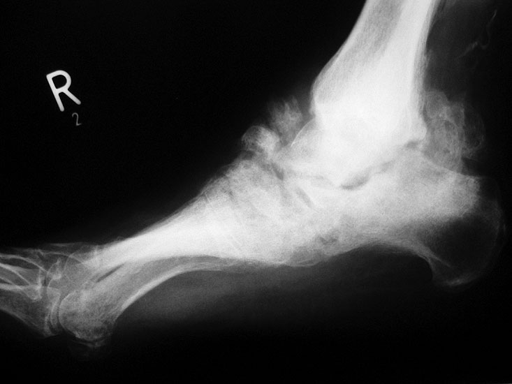 Der Knochen wird durch mehrheitlich resorptive Vorgänge unharmonisch umgebaut. Es kommt durch Subluxationen, dann spontanen Luxationen und Frakturen zu Deformierungen des Fußes, wobei sich radiologisch das typische Bild des Charcot-Fußes zeigt. Charakterisierend ist das Missverhältnis zwischen extremer Deformität und meist nur geringen Beschwerden. Auch in diesem Stadium wird anhand des MRTs häufig die Fehldiagnose Osteomyelitis gestellt 19.