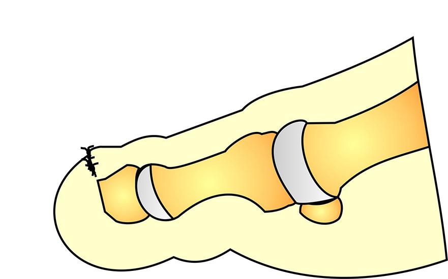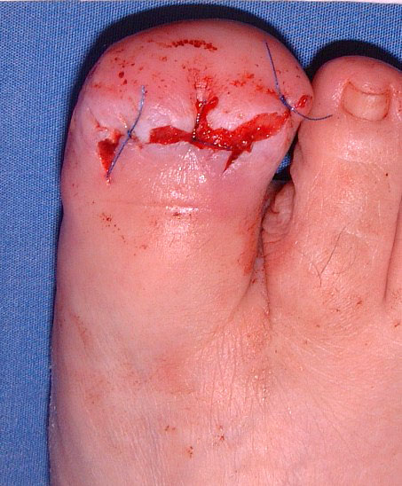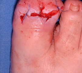 Es ist immer ein spannungsfreier Wundverschluss anzustreben. Am Fuß sollte versucht werden, die mechanisch belastbare Fußsohlenhaut bis auf das Niveau des Fußrückens hoch zu schlagen.