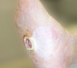 - Bei bereits bestehenden Ulzerationen, dem Verdacht auf eine Diabetische Neuroosteoarthropathie (DNOAP) und vor allem auf eine Fußinfektion ist die Evaluation des Beginns der Symptomatik und der Beschwerden sowie bisheriger Behandlungsmaßnahmen wichtig