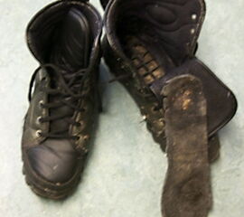 Ungeeignetes Schuhwerk ist in 30-50% Hauptursache einer initialen Fußläsion. Daher sollte die genaue Evaluierung bisheriger Schuhgewohnheiten und eine sorgfältige Inspektion des Schuhwerks ein wichtiger Punkt im Rahmen der orthopädischen Untersuchung sein 11 (Spraul 1999). Bei vermindertem Schmerzempfinden durch die Polyneuropathie werden Verletzungen durch zu enges und falsches Schuhwerk (harte Nähte, hartes Fußbett, Riemen, harte Zehenkappe, flexible Sohle) nicht wahrgenommen. Verfärbungen, Ein- oder Ausdellungen und gelegentlich auch alte Blutspuren im Oberleder und der Sohle sind Hinweis auf Stellen pathologischer Druckbelastung. Die Beschaffenheit von Schuh und Einlage sollten im Hinblick auf eine stadiengerechte Schuhversorgung im Rahmen des DFS hin überprüft werden. Einseitige Abnutzungsspuren der Sohle lassen auf eine chronische Fehlbelastungssituation schließen.