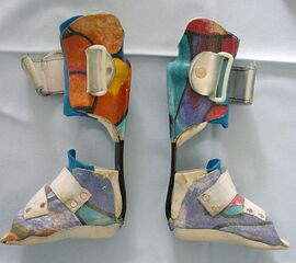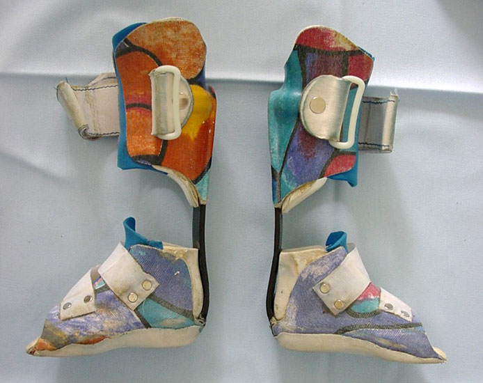 Eine schwere Hackenfußposition kann dagegen mit überknöchelhohen Schuhen nicht ausreichend gestützt werden. Hierfür ist eine höher gezogene Orthese vom Typ einer Ground-Reaction-Force-(GRF)-Orthese notwendig. Diese Orthesen besitzen einen Anschlag für die Dorsalextension bzw. eine Carbonfeder, welche die Kräfte beim Kontakt zum Boden während der Standphase speichert und beim Abstoß den Abdruck unterstützt. Neben diesen Funktionsorthesen ist für die Nacht eine Lagerungsorthese im Spitzfuß sinnvoll, damit sich die überlangen Plantarflexorenmuskulatur durch die Lagerung wieder verkürzt.
