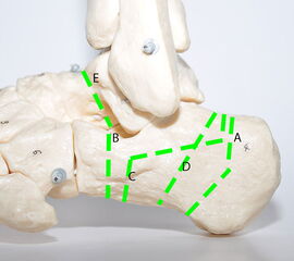 Bei jahrelanger Hackenfußfehlstellung sind teilweise auch knöcherne Korrekturen notwendig. Bei extrem fixierter Steilstellung des Calcaneus kommt es zu einem extremen Verlust des Hebelarms für die Wadenmuskulatur. Nur durch eine lateral-dorsal Verschiebung mit gleichzeitiger Verkürzung der Wadenmuskulatur können dann die Hebelverhältnisse wiederhergestellt werden. Häufig müssen solche Korrekturen mit einer komplexen Arthrodese von Rückfuß und Fußwurzel kombiniert werden um ausreichend stabile Verhältnisse zu erreichen. Gleichfalls sollten Varus- und Valgusdeformitäten durch Medial- oder Lateralverschiebung korrigiert werden 5.