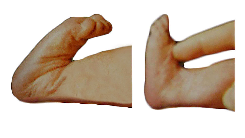 Die Entscheidung zur Therapie erfolgt auf der Basis einer umfassenden klinischen Untersuchung. Neben der Inspektion der spontanen Stellung des Fußes unter Belastung gibt die Verteilung des Verhornungsmusters an der Fußsohle schnell Auskunft über den Ort der Hauptbelastung. Durch die einseitige Belastung ist die Ferse in der Regel verbreitert, der Vorfuß sehr schmal. Im Stand kommt es entweder zum Einsinken in extremer Kauerposition oder zur Belastung der Fersen bei gleichzeitiger Überstreckung der Kniegelenke mit entsprechend instabilem Stand. Bei der Bewegungsprüfung sollte das Ausmaß der Gelenkbeweglichkeit für aktiven und passiven Bewegungsausschlag nach dorsal und nach plantar geprüft werden. Muskelkraft und Muskellängen gehören ebenso dazu wie die Prüfung einer zentralen Ansteuerung bei geringeren Kraftgraden. Bei der Funktionsprüfung ist charakteristisch die fehlende Fähigkeit des Zehenspitzenstandes. Bei einseitigem Hackenfuß kann der Patient dies häufig durch die gesunde Seite kompensieren. Klinisch wegweisend ist die deutliche Atrophie der Wadenmuskulatur auf der betroffenen Seite.