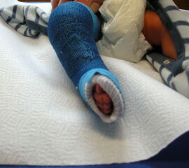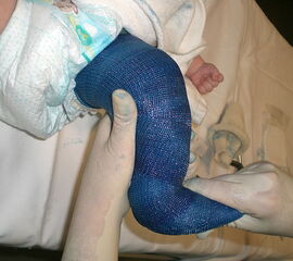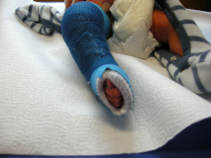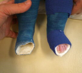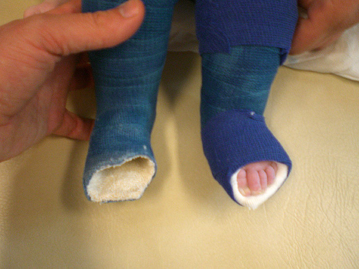 Die Ponseti-Behandlung beinhalten insgesamt 5-7 Gipse. Als Material für diese kann entweder Weißgips oder Softcast verwendet werden.