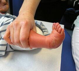 Aber auch bei neurologischen Grunderkrankungen. Hier liegt teilweise ein primärer und teilweise ein sekundärer Klumpfuß vor (z.B. Cerebralparese, Spina bifida, Arthrogrypose, HSMN etc.).