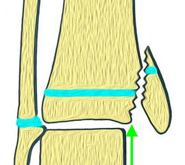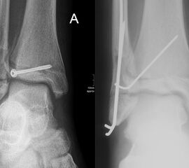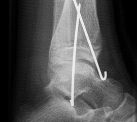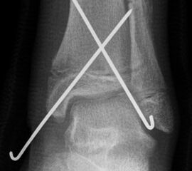 Findet sich eine Dislokation der Wachstumsfuge erfolgt nach Reposition eine K-Drahtspickung. Die postoperativ angelegte Gipsschale wird nach Abschwellung entfernt und ein Unterschenkelgips für 4 Wochen angelegt.