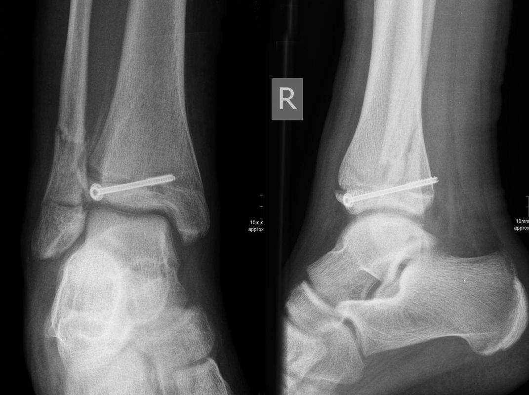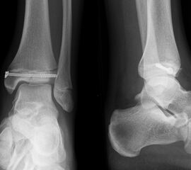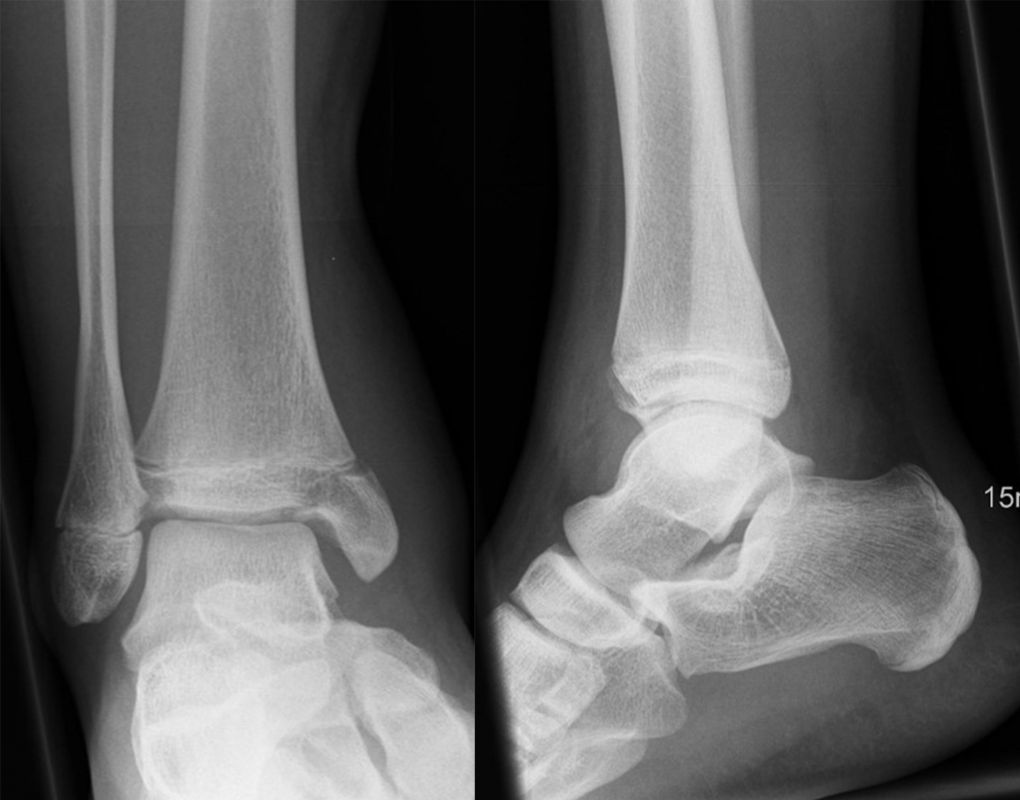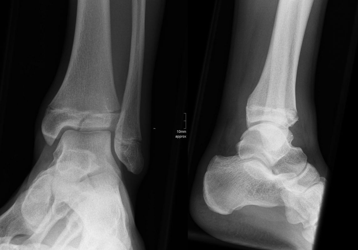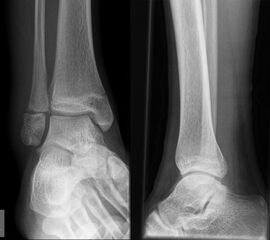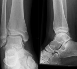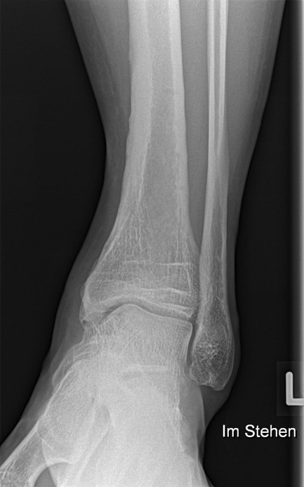 Soll eine knöcherne Verletzung ausgeschlossen werden, wird ein Röntgenbild des Sprunggelenks in zwei Ebenen durchgeführt.