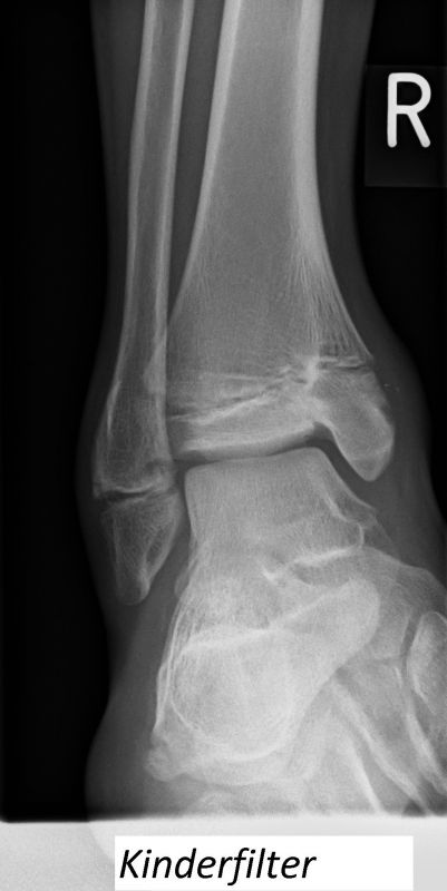 Laterale Bandverletzungen sind beim Kind häufig. Im Alltag stellt sich häufig die Frage, ob eine knöcherne Verletzung vorliegt. Ohne Röntgenbild lässt sich eine knöcherne Verletzung nicht sicher ausschließen, allerdings ist auch ein negatives Röntgenbild keinesfalls definitiv beweisend, dass keine knöcherne Verletzung vorliegt. Hinweise auf einen knöchernen Schaden sind ein ausgeprägter Gelenkerguss, ein starkes Hämatom sowie eine ausgedehnte Schwellung im Knöchelbereich. Trotzdem handelt es sich hierbei um subjektive Kriterien, die im Einzelfall schwierig zu quantifizieren sind.