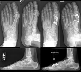 Die eigenständige Bewegung und Mobilisation im Großzehengrundgelenk und Interphalangealgelenk kann durch Physiotherapie, Lymphdrainage und Gangschule unterstütz werden. Eine radiologische Kontrolle erfolgt zur Dokumentation des Operationsergebnisses intraoperativ und nach 6 Wochen im Konfektionsschuh.