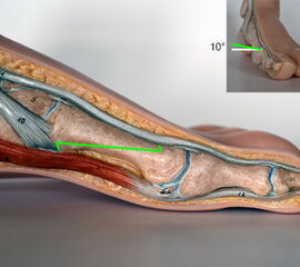 Steht der Schuhkonflikt im Vordergrund, so kann eine Anpassung bzw. Zurichtung der Schuhe ausreichend sein (siehe Kapitel Einlagenversorgung). Krankengymnastik mit Kräftigung der fuß- und sprunggelenkstabilisierenden Muskulatur sollte ergänzend durchgeführt werden (siehe Kapitel Spiraldynamik).
