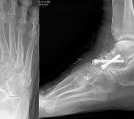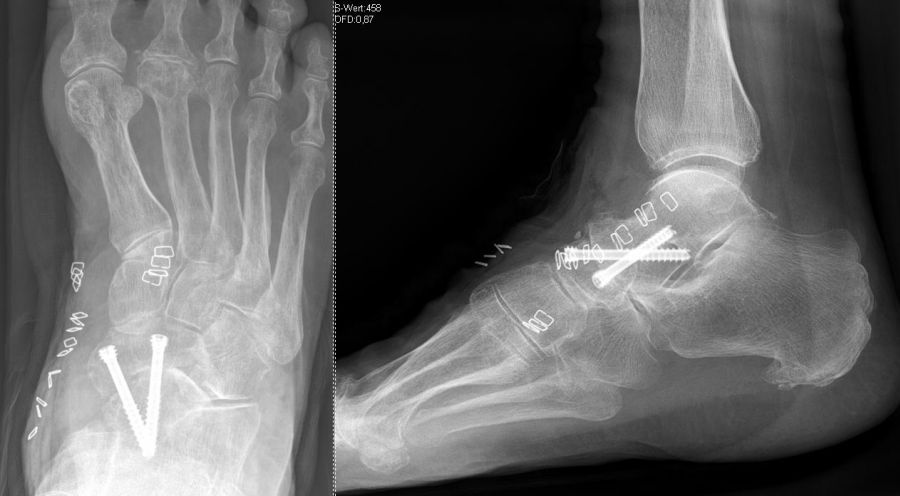 Sollten Fußfehlstellungen im Sinne eines Hohlfußes oder Knick-Senk-Plattfußes bestehen, sollte diese Fehlstellung ebenfalls adressiert werden. Das Ziel der Operation ist eine anatomisch ausgerichtete, stabile Arthrodese mit erfolgreich fusioniertem Gelenk und dadurch einer Verminderung der Schmerzen sowie Verbesserung der Funktion mit Wiederherstellung der gleichmäßigen Verteilung der gewichttragenden Last.