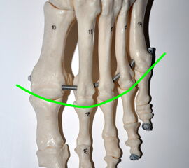 Bei Fußdeformitäten, die mit einer vermehrten Plantarflexion der Metatarsalia einhergehen, also beim Hohlfuß sowohl als Ballenhohlfuß als auch Rückfußhohlfuß, wird entgegen obigem Pathomechanismus als Ursache eine erhöhte Anspannung der Extensoren diskutiert, da der hochgewölbte Fußrücken als Hypomochlion wirkt (Breitenfelder J., Rütt A. 1985). Letztlich mündet aber auch dies durch die Überstreckung im Zehengrundgelenk in einen vermehrten Tonus der übermäßig elongierten und angespannten langen extrinsischen Zehenbeuger mit der Folge einer Schwächung der intrinsischen Muskulatur. Durch die Fehlstellung der Grundphalangen in Dorsalflexion wird zudem die plantare Platte überdehnt 12.