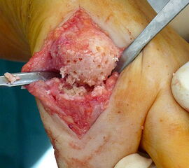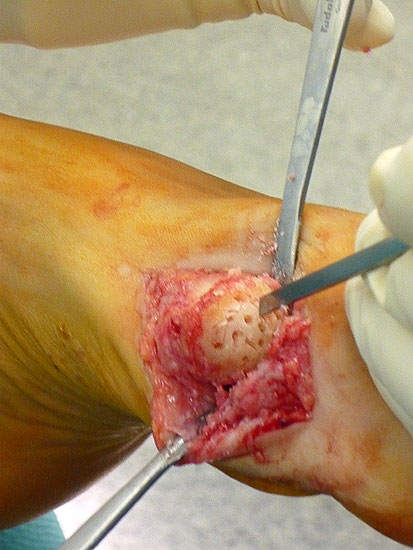 Durch die Verwendung sogenannter „Cup-and-Cone“-Fräsen und die Osteosynthese mit winkelstabiler Platte ggf. in Kombination mit einer interfragmentären Zugschraube kann die Rate der Pseudarthrosen vor allem bei schlechten Knochenverhältnissen deutlich reduziert werden, sodass dieses Verfahren zunehmend empfohlen wird 9.