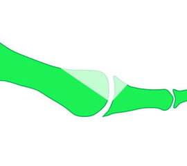 Beim Hallux rigidus handelt es sich um eine Arthrose des 1. Metatarsophalangealgelenkes, die in unterschiedliche Stadien eingeteilt wird 123. Während im Anfangsstadium die konservative Therapie mit physikalischer und manueller Therapie sowie Einlagenversorgung im Vordergrund steht, ist im späten Stadium bei zunehmendem Leidensdruck des Patienten eine Operation oft unumgänglich. Hier stehen verschiedene Operationsverfahren wie Cheilektomie, Resektionsarthroplastik, Arthrodese und Endoprothese zur Verfügung 456271. Klinisch zeigt sich stadienabhängig eine schmerzhafte Bewegungseinschränkung mit zunehmender Steifigkeit des Großzehengrundgelenkes. Vor allem die Einschränkung der Dorsalextension wird von den Patienten oft als unangenehm empfunden. Initial besteht eine bindegewebige Alteration im Gelenk, im weiteren Stadium treten Knorpeldegeneration und Begleitsynovialitis mit der Ausbildung von osteophytären Randanbauten auf. Klinische treten diese meist durch eine schmerzhafte dorsale Knochenkante in Erscheinung (Abbildung 1).