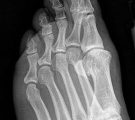 Schwere Arthrose des Großzehengrundgelenkes mit ausgeprägtem Ruheschmerz