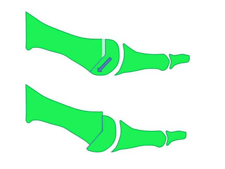 Die Cheilektomie kann mit verschiedenen Osteotomien kombiniert werden um die Beweglichkeit im Großzehengrundgelenk weiter zu verbessern. Bei der Bonny-Kessel Operation wird eine dorsale Closing wedge Osteotomie der Grundphalanx durchgeführt (Abbildung 12).