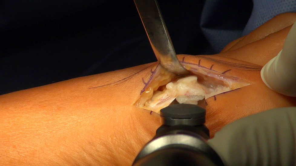 Intubationsnarkose, Larynxmaske, spinale Leitungsanästhesie, Fussblock oder Leitungsanästhesie Beim Fussblock werden im proximalen Knöchelbereich 30 bis 40 ml Ropivacain um den Nervus peronaeus superficialis, Nervus peronaeus profundus, Nervus suralis, Nervus saphenus sowie Nervus tibialis posterior verabreicht.