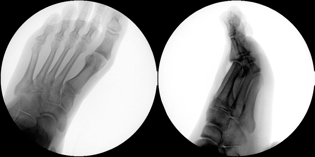Röntgenaufnahme des Fußes in drei Ebenen unter Belastung