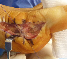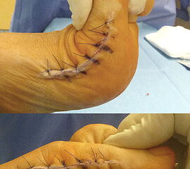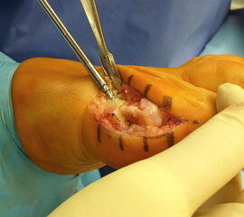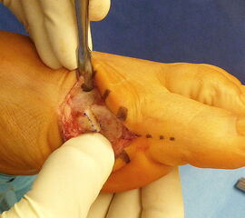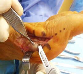 Verletzung des Nervus peroneus profundus insbesondere beim lateralem Release über einen Zugang zwischen Metatarsale 1 und 2 von dorsal