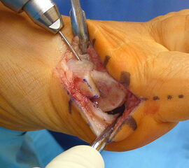 Avaskuläre Nekrose des Metatarsale 1 und ggf. resultierender Folgeeingriff (Arthrodese)