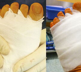 Patientenanleitung (ggf. Merkblatt) folgende präoperative Punkte zu beachten: Fußwaschung, Entfernung von Nagellack und/oder Schmuck, kein Eincremen der Füße vor der Operation