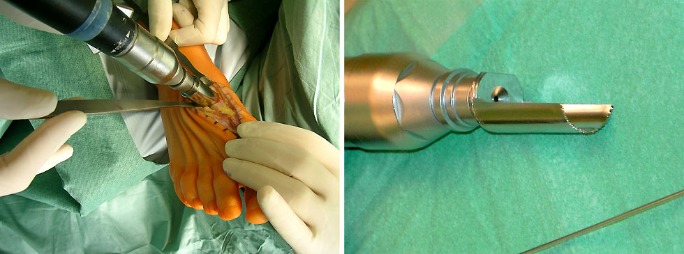 - Beseitigung der Druckschmerzen über dem Großzehenballen durch Korrektur des Spreizfußes.