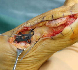 Im Vergleich zur plantaren Plattenosteosynthese erhöhtes Risiko einer Pseudarthrosenbildung 12.