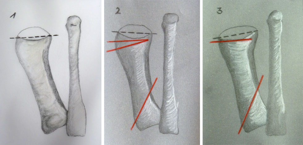 Das hier vorgestellte Verfahren ist durch die simple Querosteotomie im Meta-diaphysären Übergang sehr einfach durchzuführen. Werden jedoch die Grundprinzipien der Osteosynthese nicht beachtet (Rotationsmarkierungen, Kompression, Anmodellieren der Platte) ist die Komplikationsmöglichkeit nicht unerheblich.