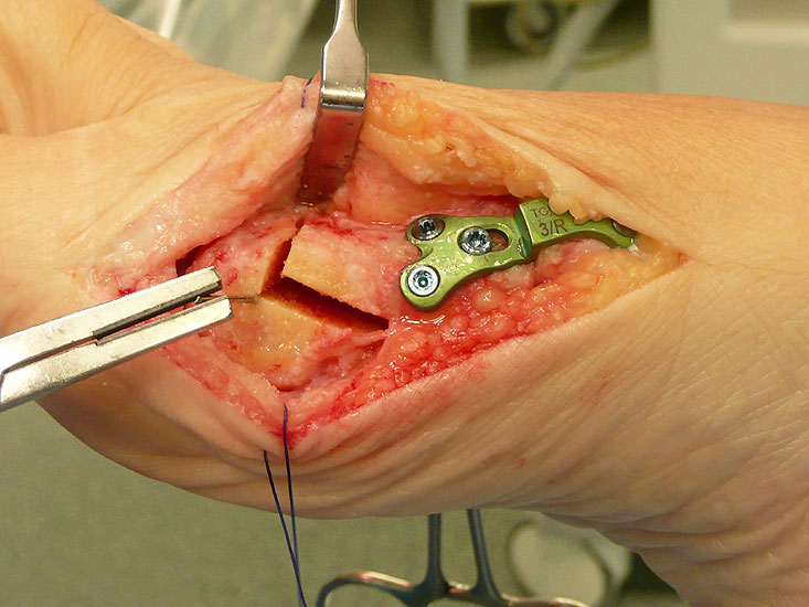 Besonders bei proximalen Osteotomien , aber auch bei TMT I- Arthrodesen haben sich heute winkelstabile Implantate zur Osteosynthese durchgesetzt 6.